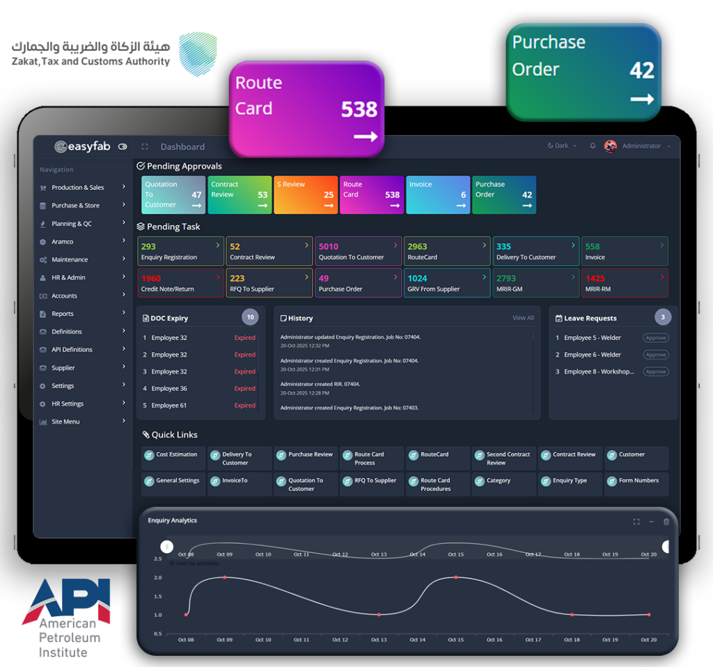 EasyFab ERP is an all-in-one platform for industrial manufacturing that connects your entire operation from enquiry to invoicing.